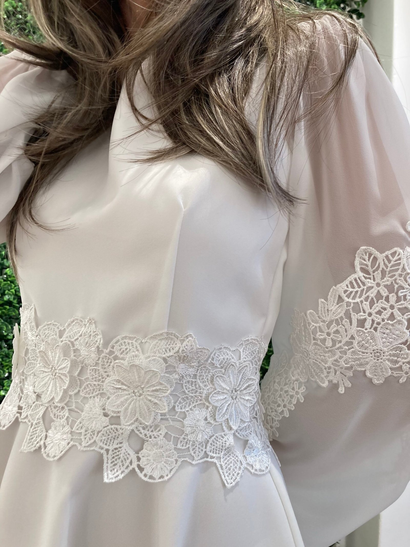 Populær konfirmationskjole 2026 til piger – LINDA med lange puf-ærmer